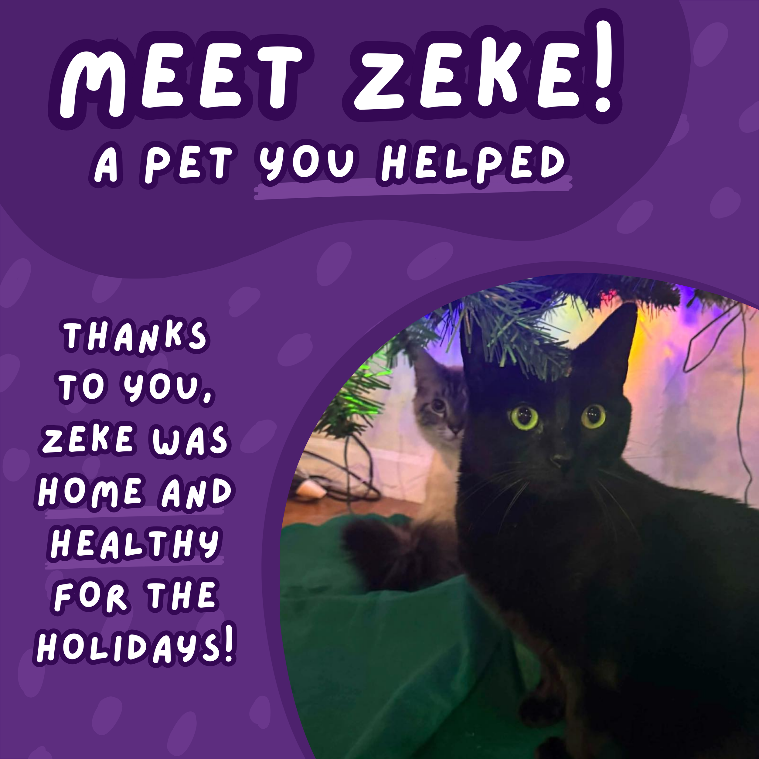 On a happier note, meet Zeke! His mom and dad reached out to Helping Hands last month when he became very ill. With proper veterinary treatment—and some assistance from Helping Hands—Zeke made a full recovery. Best of all, he was able to enjoy Christmas healthy and happy at home with his familly.